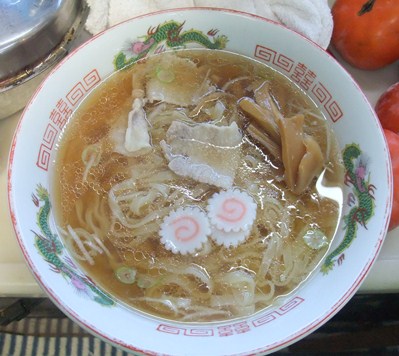 味も塩ラーメンに近いようなあっさり醤油味です。