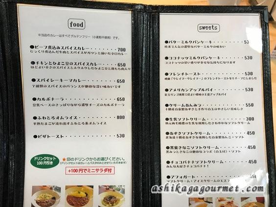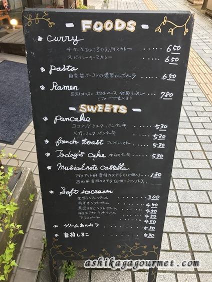 表に出ているメニューを見ると、スイーツの他にカレー、パスタ、フォー等の食事メニューもあります。