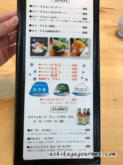 スノーアイス(台湾風カキ氷)のメニューとビール。