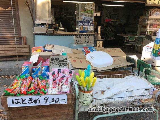 店の軒先には鑁阿寺でお約束の「はとまめ」30円。