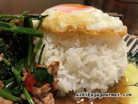 ご飯はタイ米、上には目玉焼きが乗っています。