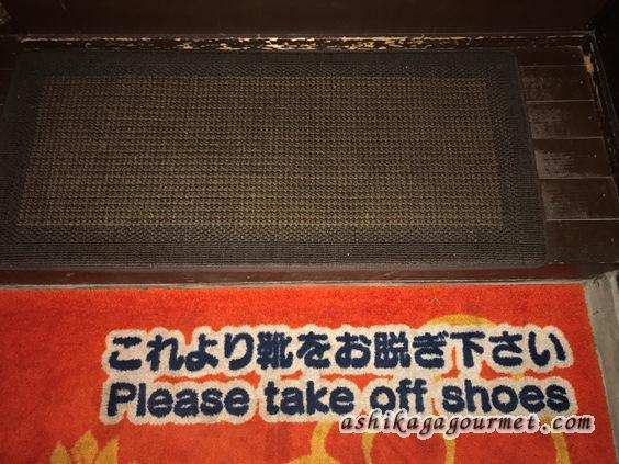 店内は土足厳禁なので、階段の入口で靴を脱いでから上がります。下駄箱は左側。