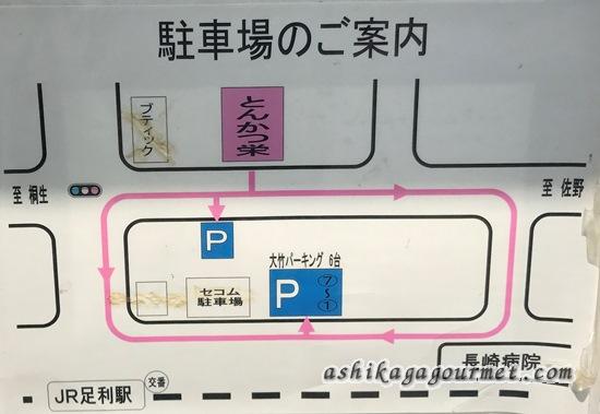 駐車場は県道沿いお店の向かいと、その裏側JR足利駅北口向かいにあります。