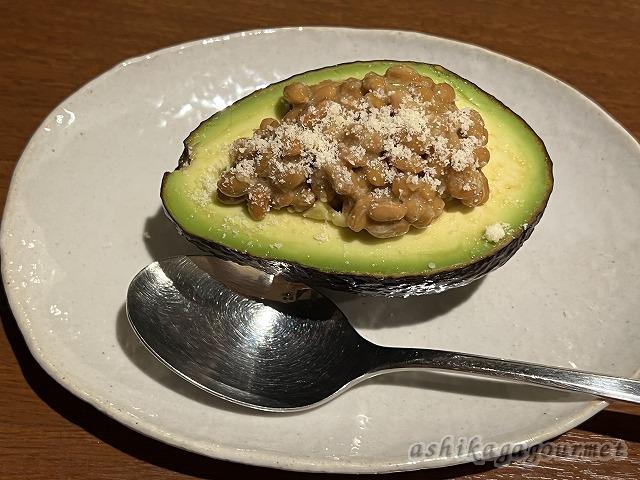 半身のアボカドに納豆、上からはパルメザンチーズが載っています。