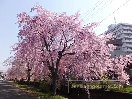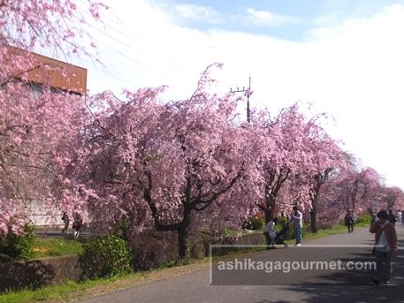 場所は、足利市田所町にある「さくらクリニック」前の旧袋川沿い。総合グランド北側から田所町~本城1丁目にかけて72本のしだれ桜が目を楽しませてくれます。