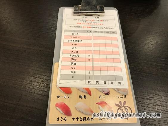 寿司の注文は専用の用紙があります。
