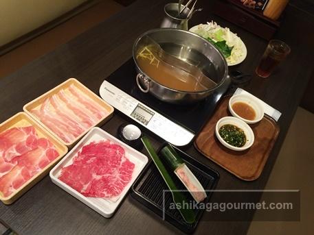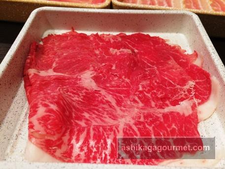 ダシがセットされると、お肉が到着します。