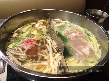 お肉よりも野菜の湯で上がりに時間がかかるので、2つのダシ両方に野菜を投入。