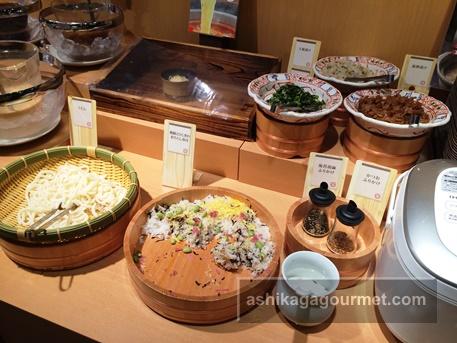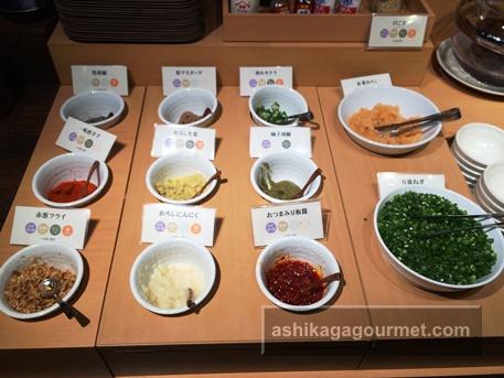 薬味や具材、ご飯はバイキングからよそってきます。
