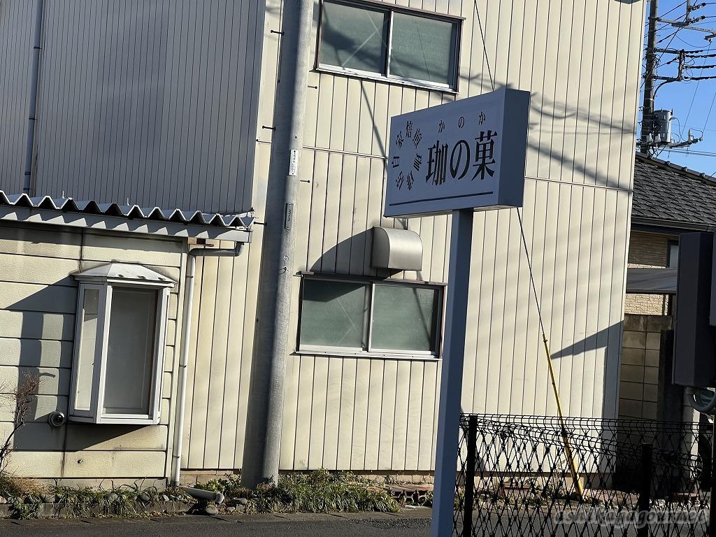 細い通りに「珈の菓」の看板が出ています。
