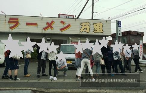 2016年5月GW中の平日午後2時過の「ラーメン万里」前の行列。