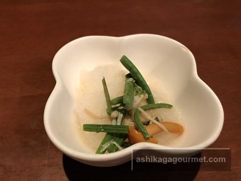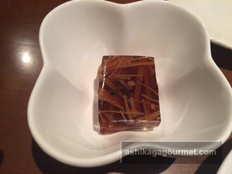ある日のお通しは、えのきだけの煮凝りでした。