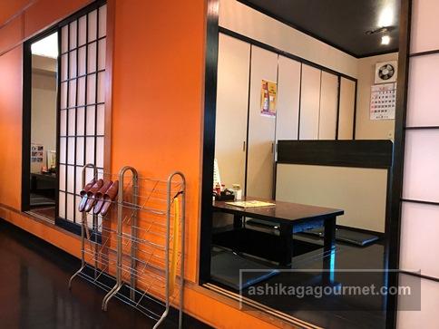 店内に入ると正面奥にレジ、その右手に厨房とカウンター席、入口左側にテーブル席、その奥にお座敷席があります。