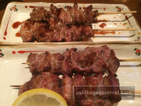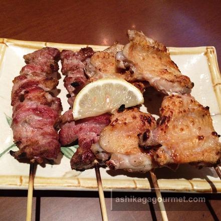 たれ:白もつ、若鳥、つくね×2、ねぎ間