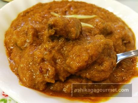 角切りのマトンと、とろみの強い濃厚なルー、トッピングにジンジャー。