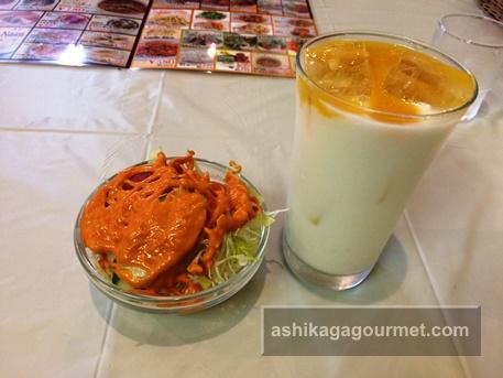 Aコース :カレー1種とナン(ライス)、チキンティッカ、ミニサラダ、ドリンク