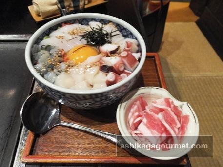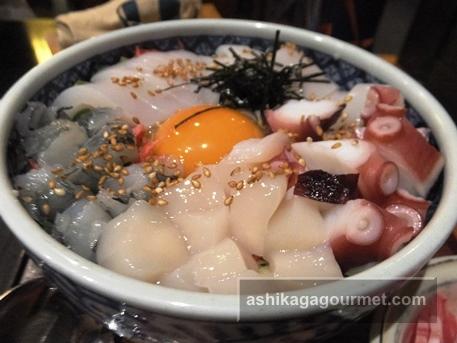 どんぶりから溢れんばかりの海鮮。