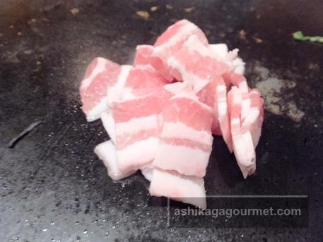 豚ばら肉を炒めてこれを下敷きに、