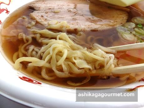 麺は機械打ちだと思いますが、佐野ラーメン風の平べったいちぢれ麺です。