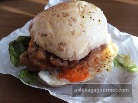 ラム肉ではなく、日本人向けに国産鶏モモ肉を使用してサンドしたそうです。