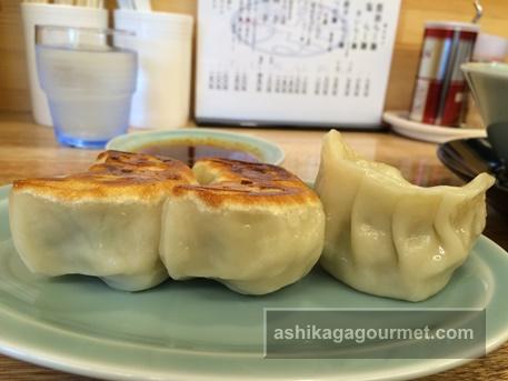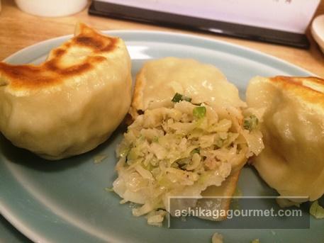 佐野ラーメン店に多い皮が厚くてモチモチ、コロンとした形の餃子なのですが、これまた、餃子の大きさも半端ではない!