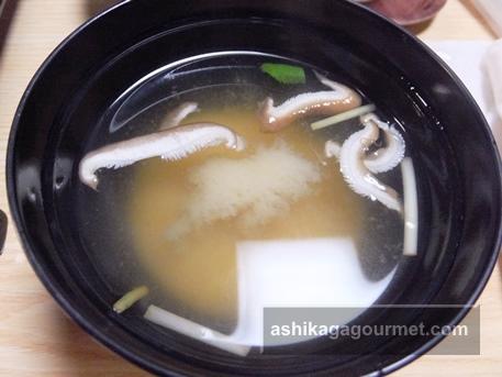 椎茸と三つ葉、豆腐のお味噌汁、お新香