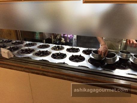 1階ではガラス越しに釜めしを炊いている様子が見えます。