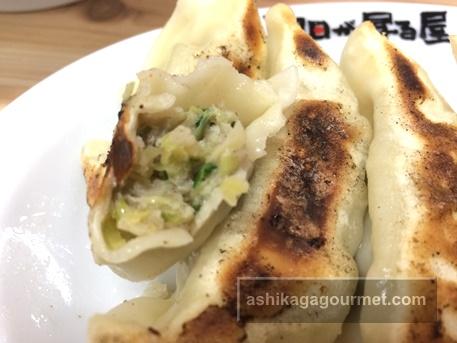 最近、佐野ラーメンのお店に多い丸みと高さのある餃子ではなく、ほぼノーマルな形に近いです。