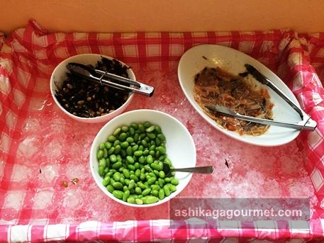 枝豆、ひじきの炒め煮、春雨サラダ。