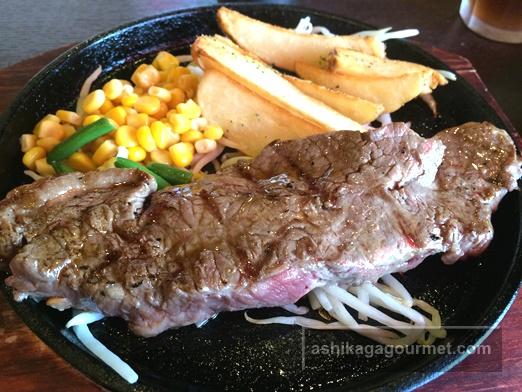 150gのステーキにライス、サラダ大盛り、デザート中盛りで、
