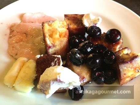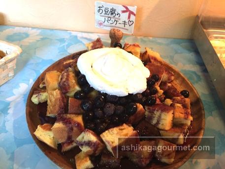 「お豆腐のパンケーキ」は豆乳のような風味のあるさっぱりとしたホットケーキ生地でした。