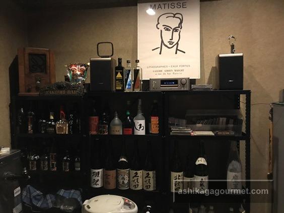 カウンターの奥には有名どころの日本酒の瓶がズラリ。
