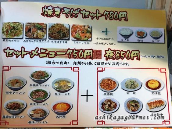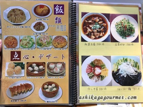 メニューの写真は下に載せていますが、「中華料理 大黒」は山川町にある「台湾料理 四季紅」と似たようなスタイルのお店で、麵とご飯ものを組み合わせた1,000円以下のメニューがたくさんあります。メニューの写真を見ても、「四季紅」にあるメニューとほとんど同じです。味は少し違いますが・・・。