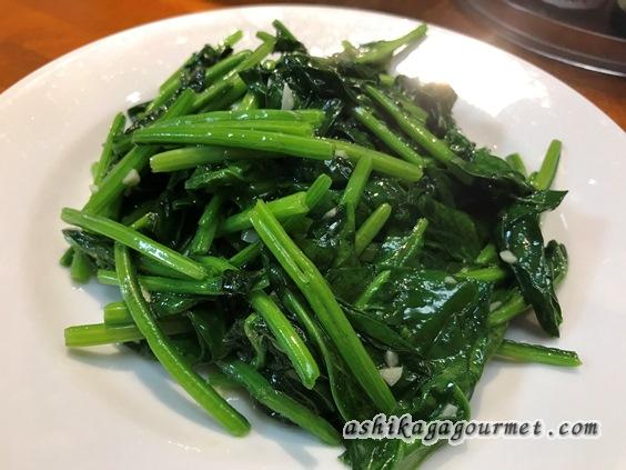 中華スープにニンニクを効かせてサッと炒めたもの。塩分と化調がキツイですが、それを除けば美味しいです。