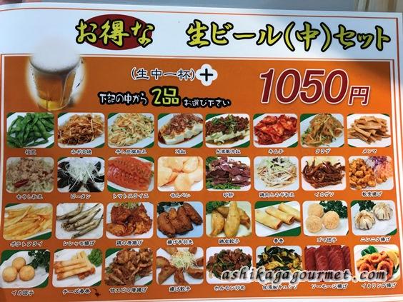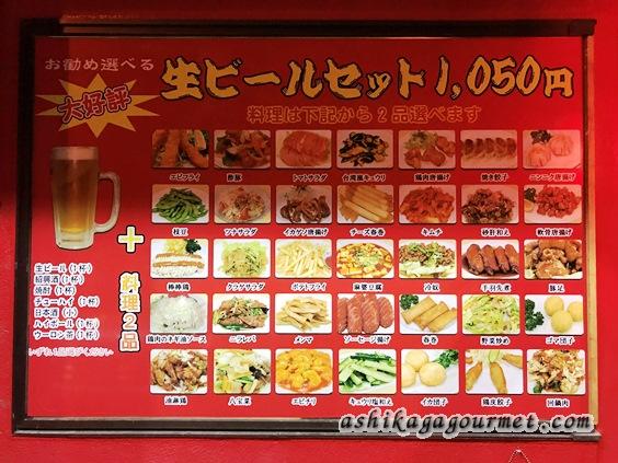 入口には、生ビール+料理2品で1,050円の生ビールセットの看板。安いです!
