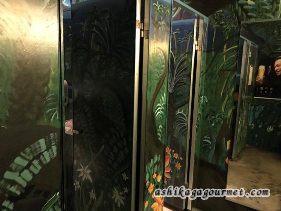 トイレの中はジャングルをイメージしたペイント。BGMもジャングルの中に入るかのような鳥の鳴き声に猿の雄たけび?が響いていました。