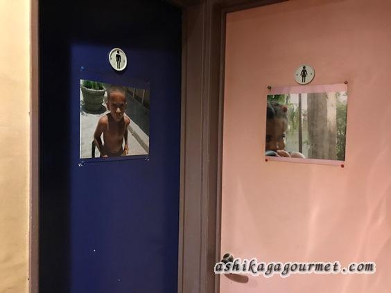 トイレの入口には少年と少女の写真。