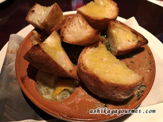 荒みじん切りのガーリックが効いていてパンもお酒もはかどりそうな味。