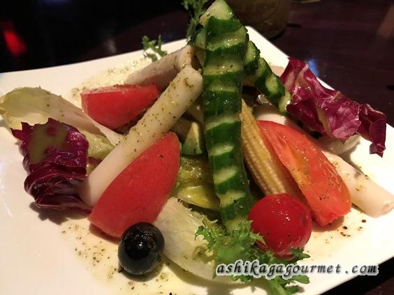 洋食のレストランでは出てこないような野菜がたくさん入っています。酸味の効いたドレッシングも美味。