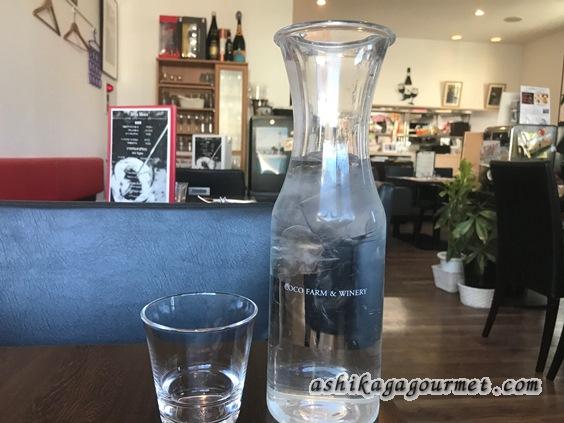 最初に出てきたお冷のカラフェはココファーム&ワイナリーの収穫祭で購入する「しぼりたてワイン」で使われているプラスチックのものでした。いつも捨てていたけれど、今度から使おうと思ってしまいました。