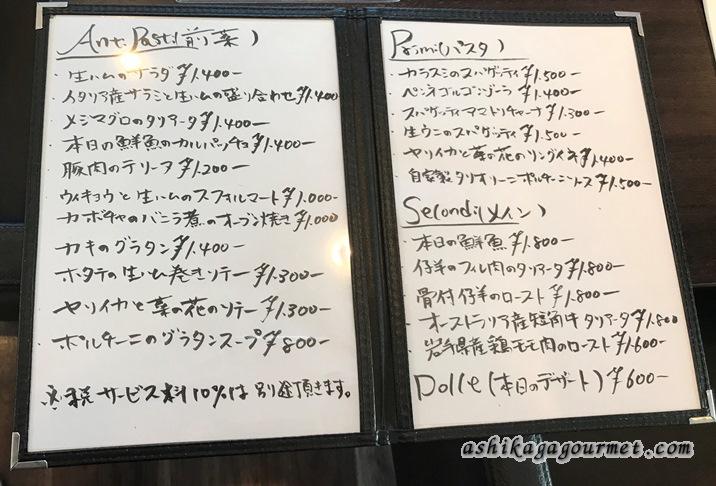 別の日のアラカルトメニュー