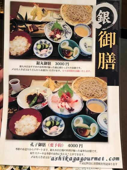 銀丸の蕎麦御膳 「孔子御前」4,000円は要予約