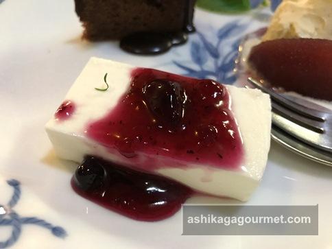 レアチーズケーキにブルーベリーソース