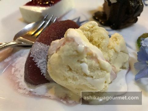 バニラアイスとリンゴの赤ワイン煮添え