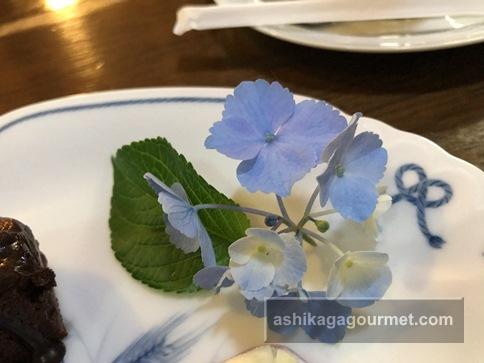 6月だったので、デザートにはアジサイの花が添えてありました。