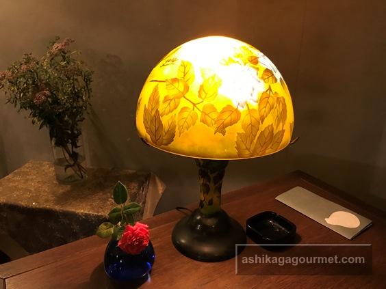 テーブルの上にはガレ風ランプ。