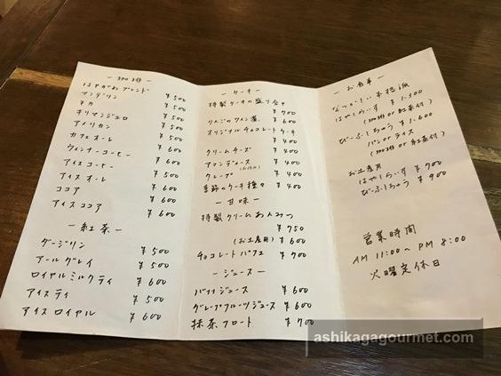 (写真のメニューと価格は2017年増税前のものですので参考程度に)。