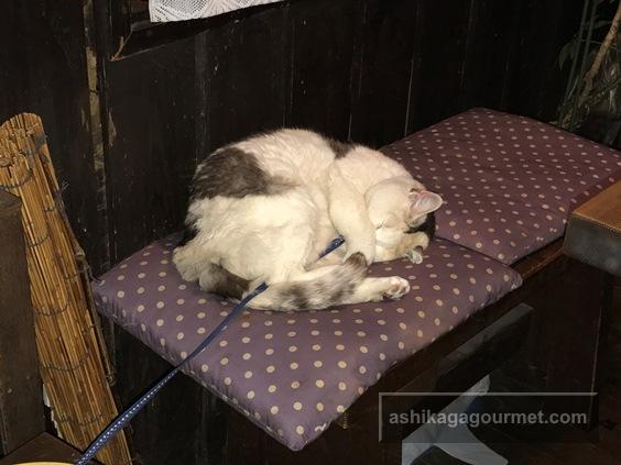 お店に入ると猫が寝ていました(2021年現在17歳だそうです)。