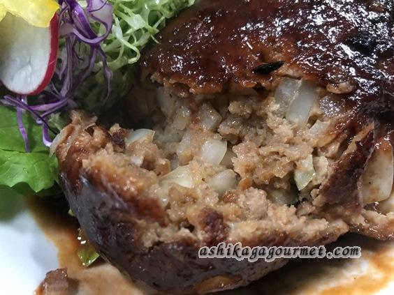 ハンバーグの中身は粗みじんのたまねぎがたっぷり。