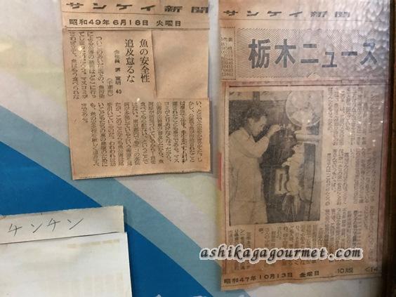 店内に飾ってあった昭和47年~49年にかけて新聞で報道された時の切り抜き。